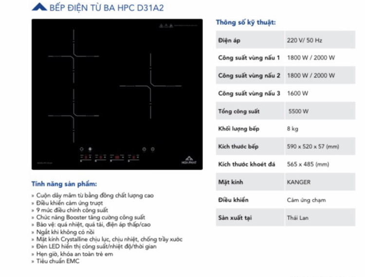 » Công suất vùng nấu 2: 1800 W / Boost 2000 W