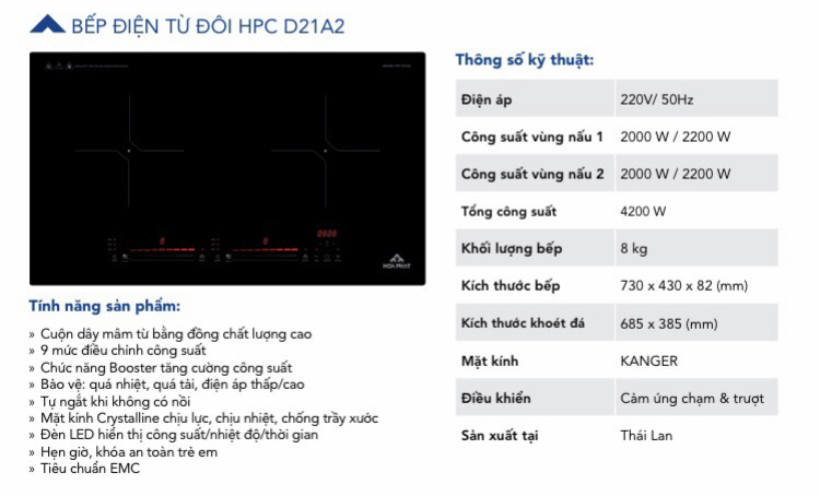 Bếp điện từ đôi HPC D21A2