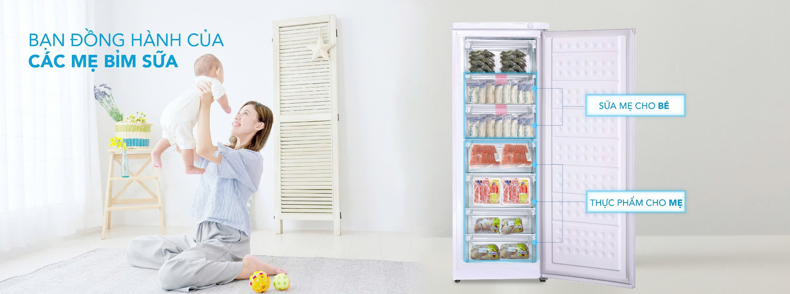 Với Tủ đông đứng Hoà Phát, các mẹ bỉm có thể an tâm lưu trữ sữa thời gian dài mà không lo bị hỏng. Đồng thời việc chia ngăn cũng sẽ tối ưu được việc sắp xếp bữa ăn khoa học cho con.