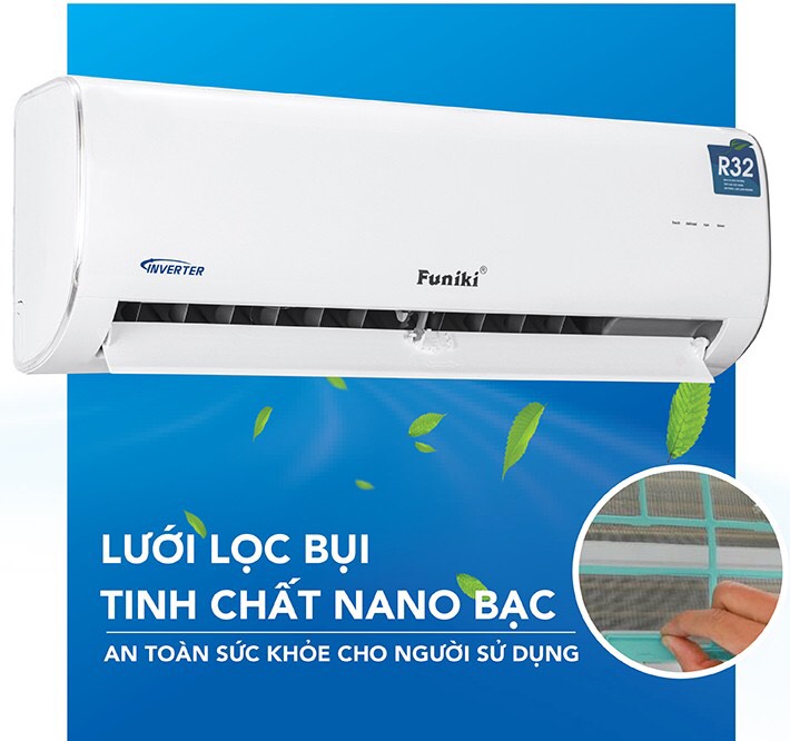 Lưới lọc bụi thiết kế bên trong dễ dàng tháo rời để làm sạch; giúp điều hòa luôn hoạt động hiệu quả. Lớp lưới dày giữ cho bộ trao đổi nhiệt luôn sạch sẽ, trong khi đó lớp phủ Nano bạc chống vi khuẩn bảo vệ bạn khỏi các chất gây ô nhiễm nguy hiểm có trong không khí. Đồng thời tính năng hút ẩm (khử nồm) giúp bạn và gia đình có thể tận hưởng bầu không khí trong lành, dễ chịu, không lo bụi bẩn hay nấm mốc.