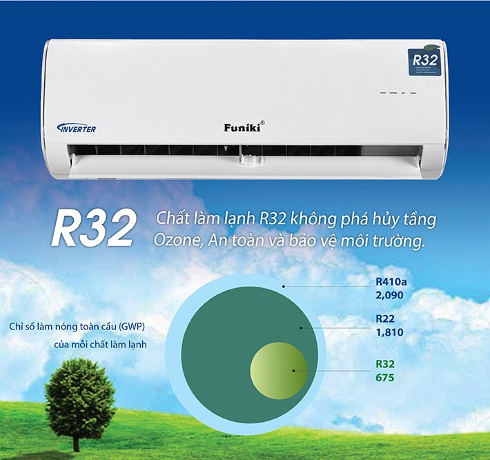 Điều hòa treo tường Funiki Inverter 18000btu 1 Chiều HIC 18MMC sử dụng môi chất lạnh thế hệ mới R32 có những ưu điểm vượt trội: Hiệu suất làm lạnh cao, tiết kiệm điện năng tiêu thụ. Hạn chế tác động lên tầng Ozone, từ đó ngăn chặn tình trạng nóng lên toàn cầu, bảo vệ Trái Đất, kiểm soát tình trạng biến đổi khí hậu với giải pháp thân thiện môi trường … đưa Funiki trở thành điều hòa tiết kiệm điện hàng đầu.