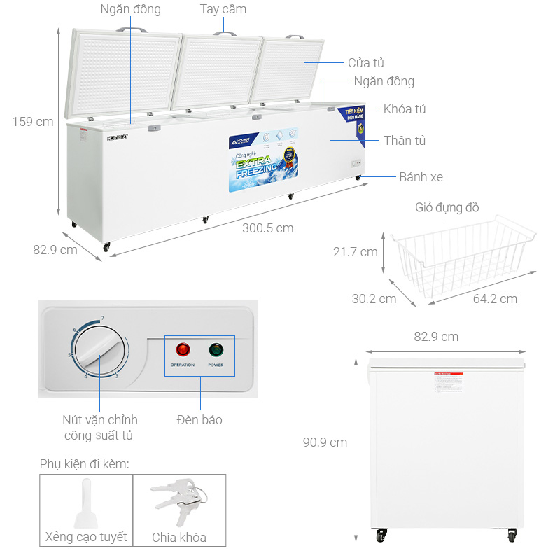 Tủ đông dung tích lớn Hòa Phát 1 ngăn 3 cánh HPF AD61190 1700L Dàn Đồng