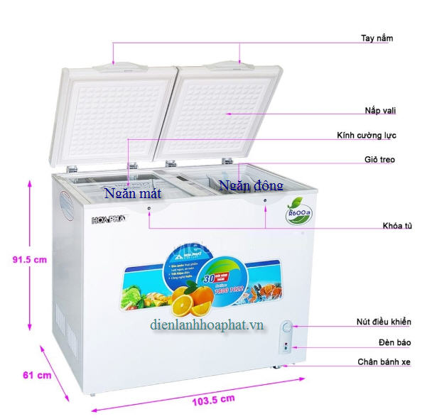 Đặc điểm Tủ đông Hòa Phát 250l ,2 ngăn đông và mát: