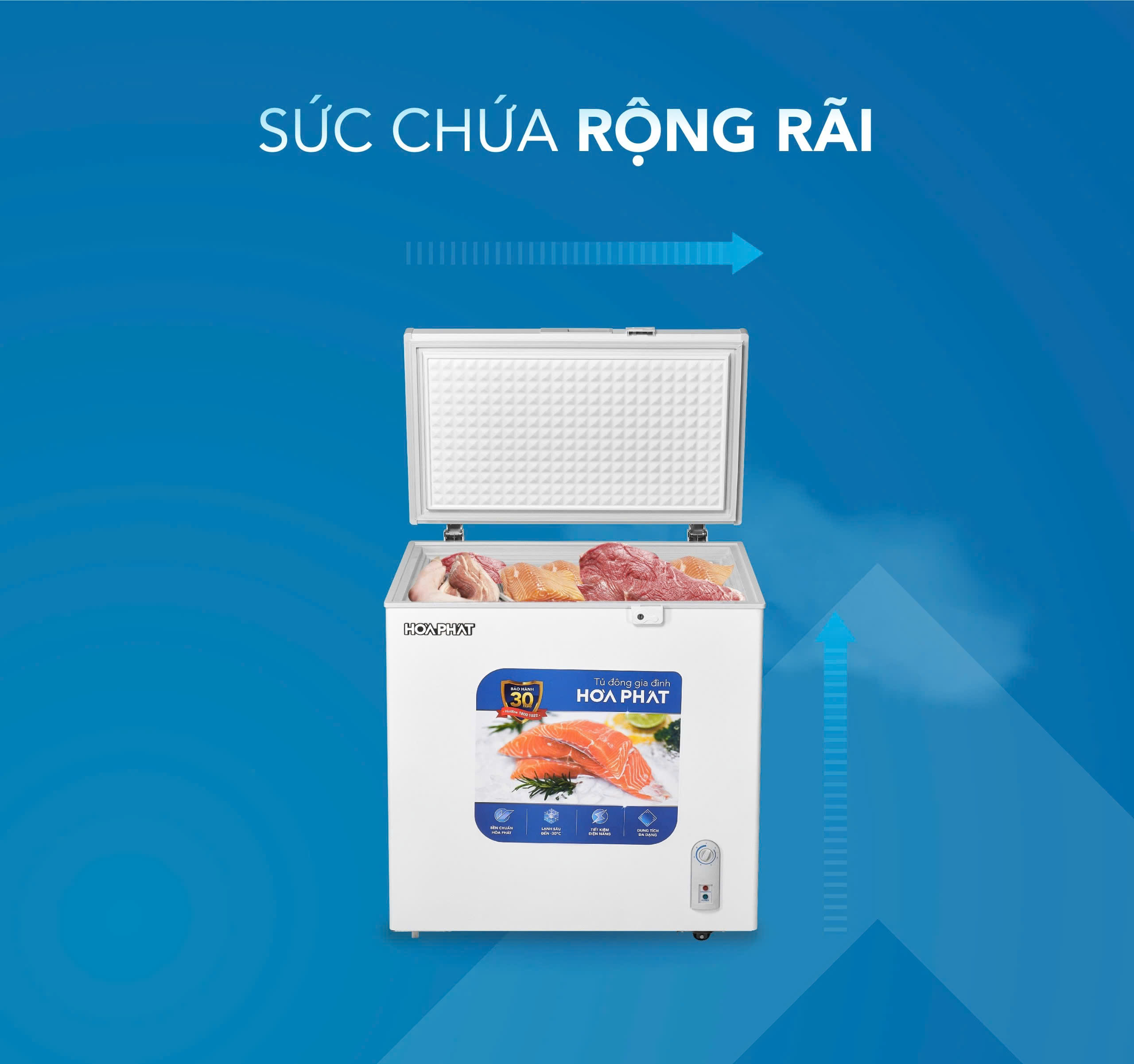 Sở hữu dung tích lớn, tủ đông Hoà Phát có khả năng lưu trữ thực phẩm ấn tượng về số lượng cũng như chất lượng tươi ngon dài lâu