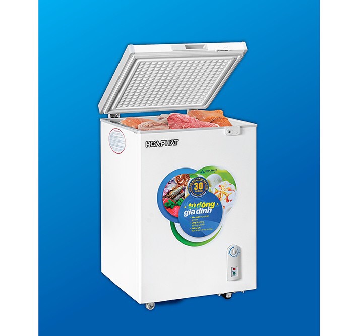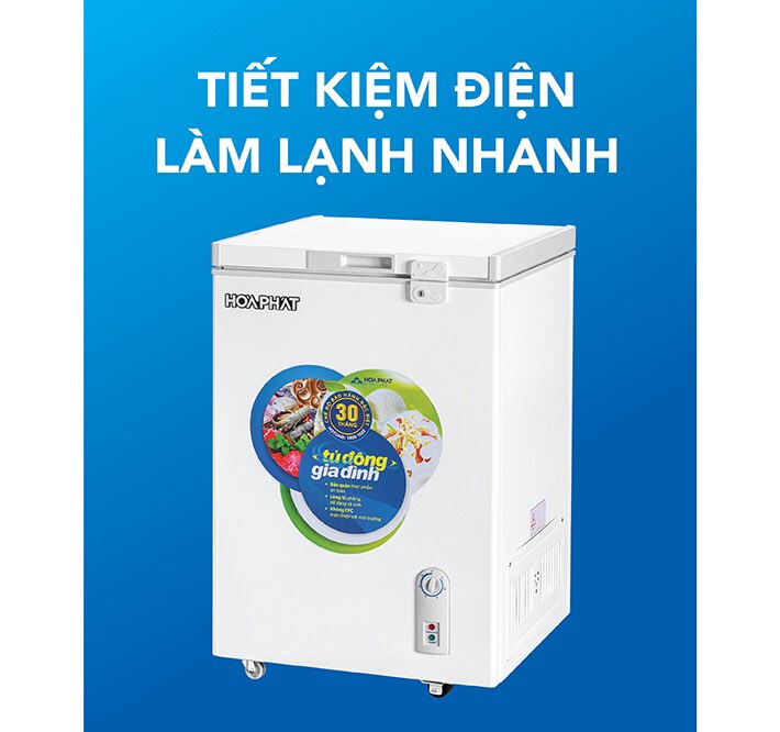 Tủ đông gia đình 1 chế độ ( Đông) 110 lít - TIẾT KIỆM ĐIỆN được tích hợp các chi tiết đem đến sự tiện lợi, thoải mái nhất cho người sử dụng, bao gồm: - Tay nắm : giúp việc nâng nhấc cánh tủ dễ dàng, hạn chế va đập trong quá trình sử dụng và vận chuyển. - Khóa an toàn: việc mở tủ thường xuyên sẽ làm thất thoát nhiệt, giảm hiệu quả đông lạnh của tủ, đồng thời tiêu tốn nhiều điện năng không cần thiết. Khóa an toàn sẽ giúp người sử dụng kiểm soát tốt hơn hoạt động đóng – mở tủ đông. - Tích hợp bánh xe: sở hữu trọng lượng lớn, tủ đông gây nhiều khó khăn khi vận chuyển. Nhờ tích hợp bánh xe bên dưới tủ, người sử dụng sẽ dễ dàng di chuyển tủ một cách thuận tiện và an toàn hơn. Mặt trong tủ thiết kế thẳng đứng, bề mặt phẳng: giúp tủ đông giảm bám tuyết trong quá trình sử dụng, dễ dàng vệ sinh.