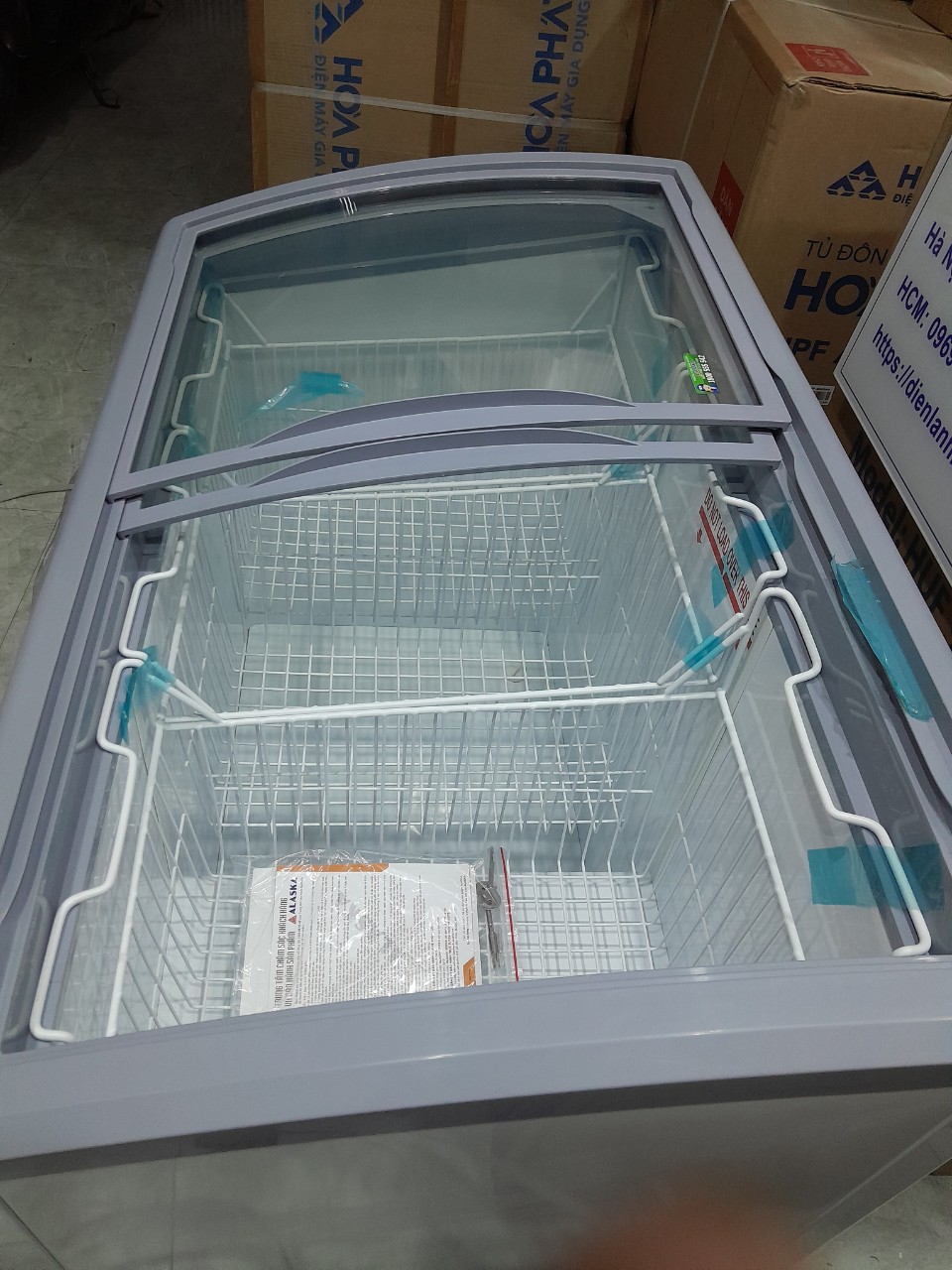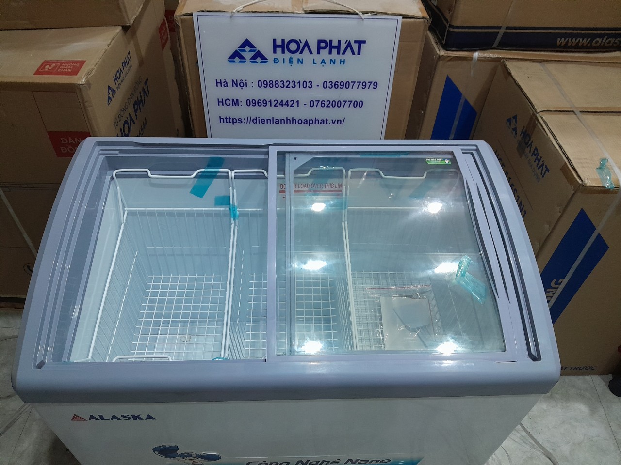- Tủ đông Alaska KC 210 với thiết kế 2 nắp kính cong chịu lực, mở kiểu cửa lùa, có khóa an toàn giúp dễ dàng quan sát cho hoặc lấy thực phẩm trong tủ. Lòng tủ bằng nhôm phẳng lạnh nhanh, chống đóng tuyết tối đa.