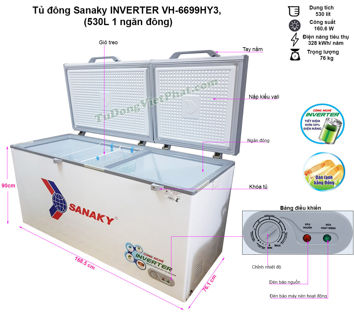 Mô tả tủ đông Sanaky VH-6699HY3 Inverter 530 lít 1 ngăn đông:
