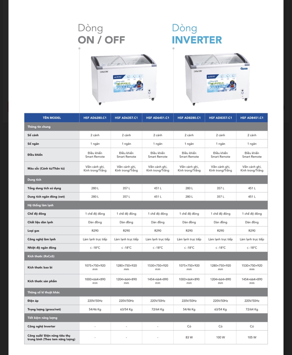 Tủ đông trưng bày Hòa Phát Inverter HSF AD8357.C1 sở hữu công nghệ Extra Freezing đông sâu tới -30 độ C, dàn máy nén khoẻ với mặt kính Low E chống thất thoát nhiệt và tính năng hiển thị nhiệt độ, cũng như báo lỗi tự động bên ngoài tủ.