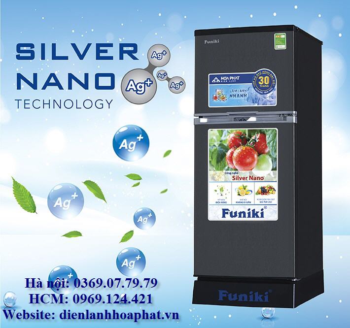 Tủ lạnh Hòa Phát Funiki FR-126ISU sử dụng công nghệ silver nano. Với kích cỡ phân tử ở mức vi mô, chỉ từ 3-5 nano mét, nano bạc có khả năng tiêu diệt những vi khuẩn gây hại theo nguyên tắc bao bọc trực tiếp tế bào của vi khuẩn và phá vỡ cấu trúc tế bào, vô hiệu hoá sự phát triển của chúng. Công nghệ silver nano không chỉ giúp tủ lạnh có một môi trường vô khuẩn mà còn có tác dụng giúp thực phẩm được bảo quản tốt hơn , tươi lâu và đảm bảo giữ nguyên các chất dinh dưỡng có trong thực phẩm