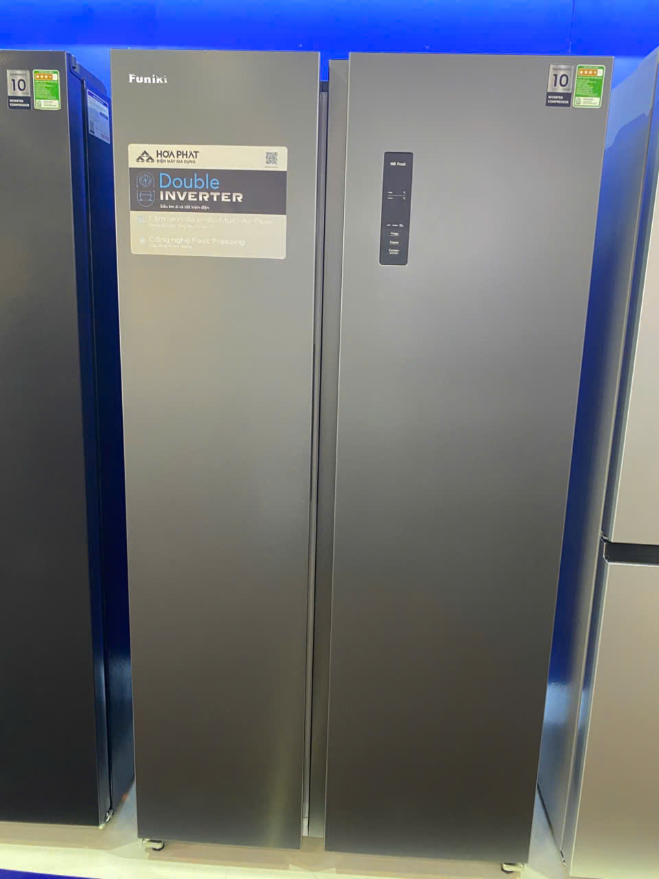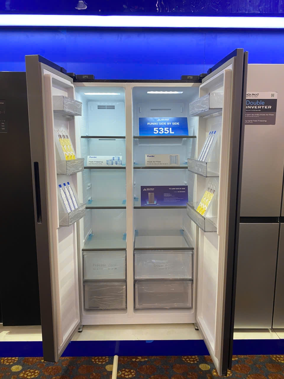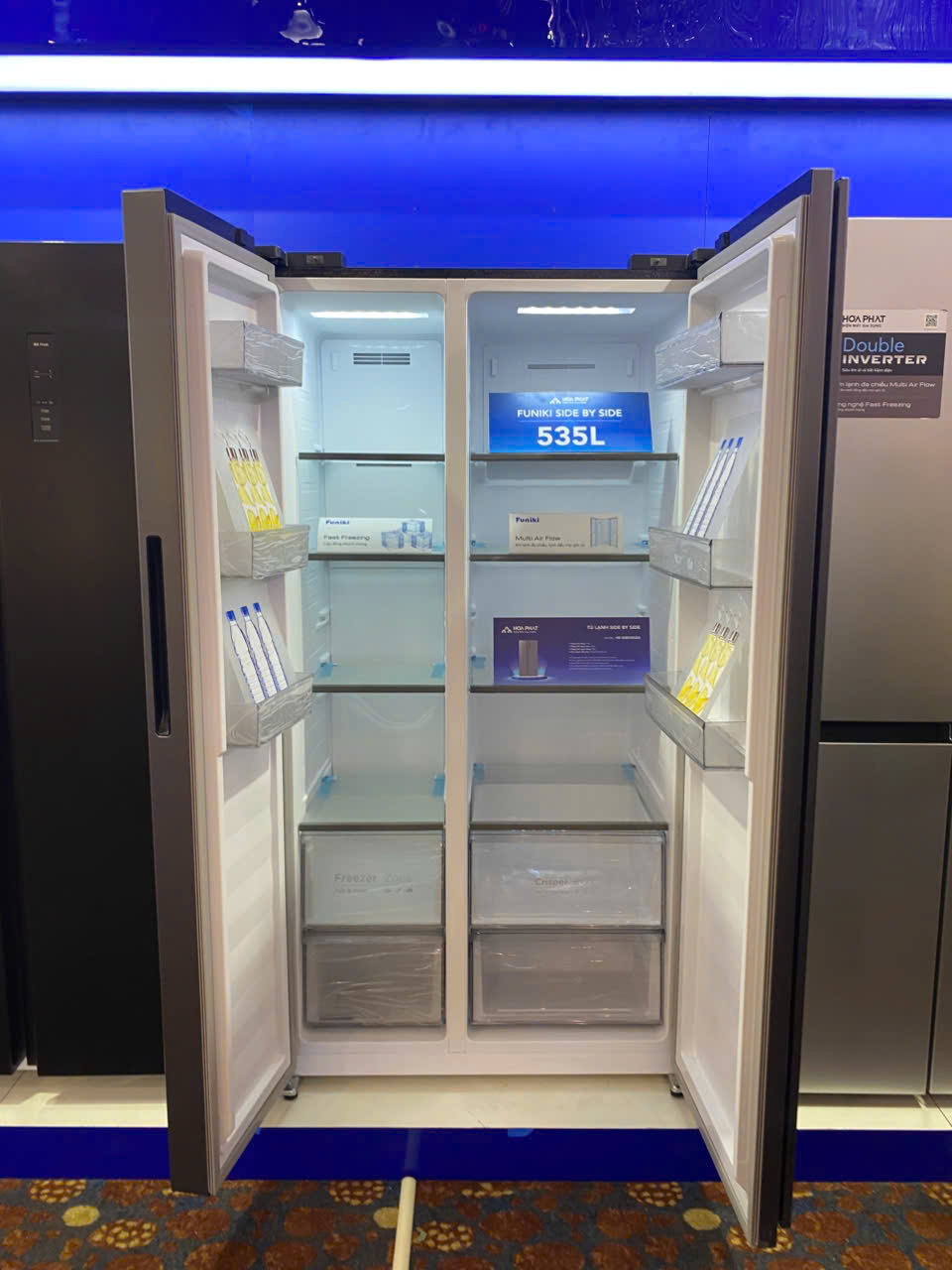 Tủ lạnh Funiki Side by Side 535 lít HR SS8535SDG được sản xuất trên dây chuyền hiện đại, ứng dụng công nghệ Double Inverter vận hành siêu êm ái và tiết kiệm điện năng, Multi Air Flow giúp làm lạnh đồng đều. Giải pháp hoàn hảo cho gia đình hiện đại giữ thực phẩm tươi ngon.
